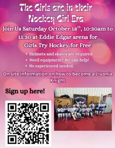 Girls Try Hockey For Free! By sdow | October 13, 2025 | Comments Off on Girls Try Hockey For Free! https://tryhockeyforfree.com/event_detail/4409 Posted in Front Page