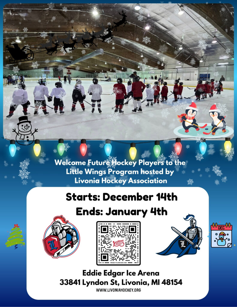 Do you have family or friends or a younger sibling who are thinking about hitting the ice? The Little Wings program is the perfect way to start their hockey journey—full of smiles, skating, and brand-new gear to make them feel like a pro from day one. Starts December 14th! Register Here: Livonia Little Wings (Winter…